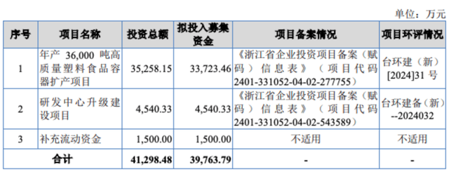 不外另一方面,此次IPO募资,新天力打算募资3。98亿元,此中占比85%的资金3。37亿元,仍打算砸向新增3。6万吨高质量塑料食物容器扩产项目。其次为研发核心升级项目4540万元,弥补流动资金1500万元。
