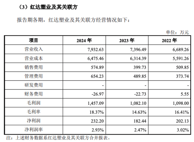 何麟君的兄弟何麟彬及其配头节制了3家企业。浙江红达塑业股份无限公司及其全资子公司台州市椒江红达塑业无限公司次要处置出产和发卖一次性餐饮塑料杯、纸杯和打包碗。2022年-2024年,红达塑业的营收别离为6689。26万元、7396。49万元和7932。63万元。