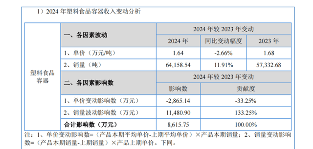 2024年、2025年1-6月,公司对西贝塑料食物容器发卖额别离同比下降13。97%、13。86%,次要系西贝采纳收缩快餐、砍掉零售、回归到西贝擅长的复杂西餐营业的策略,对公司产物的需求有所下降,两边单价则跟着原材料价钱下降同向变更。